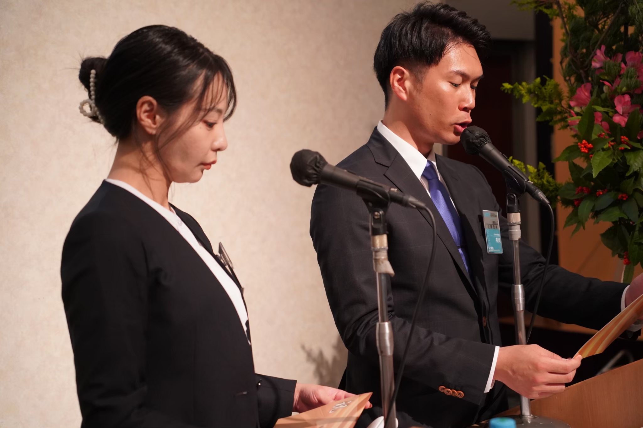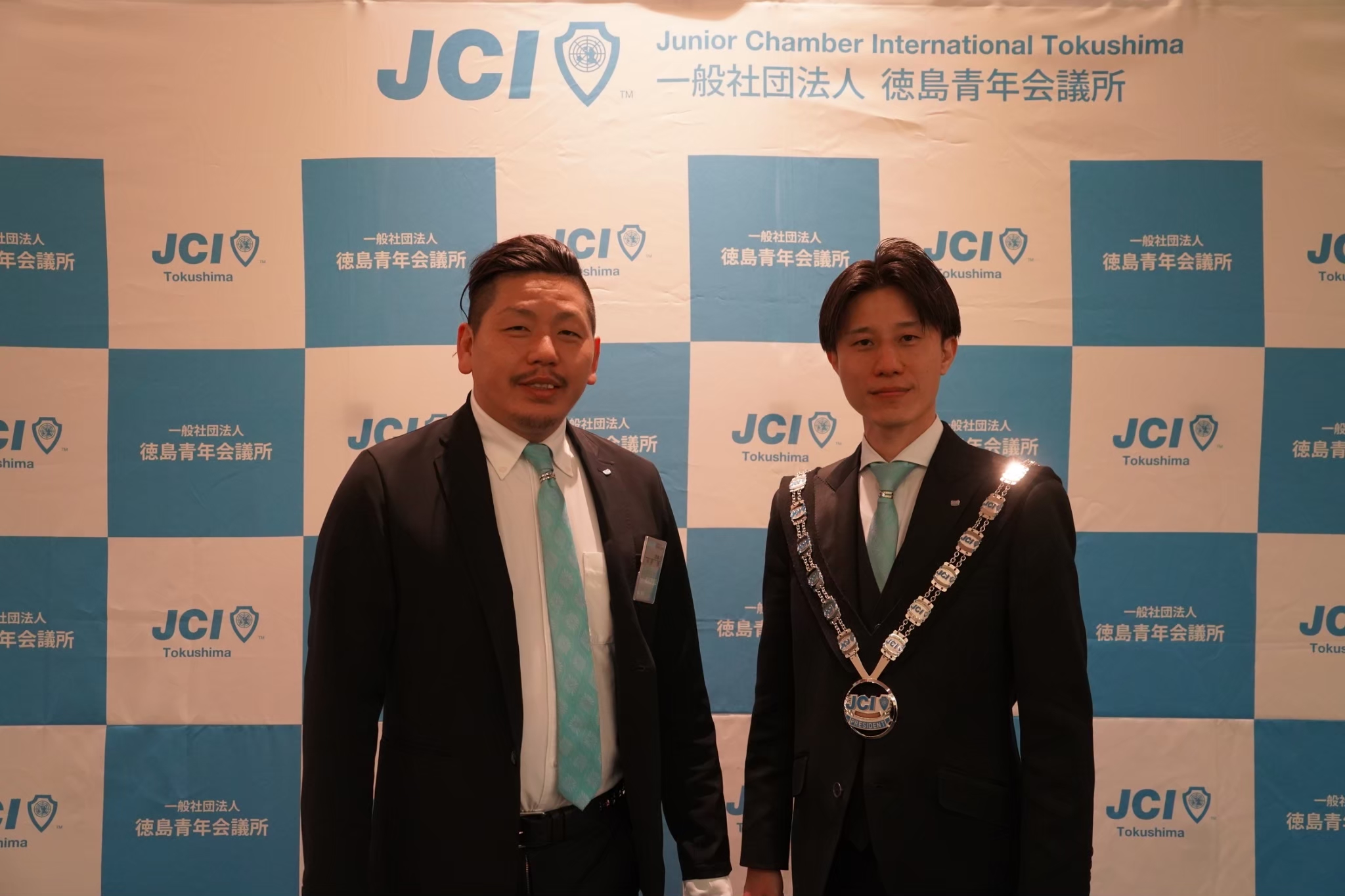 こちらの写真は2025年度理事長の阿部哲也理事長と2024年度理事長の中原翔直前理事長です。