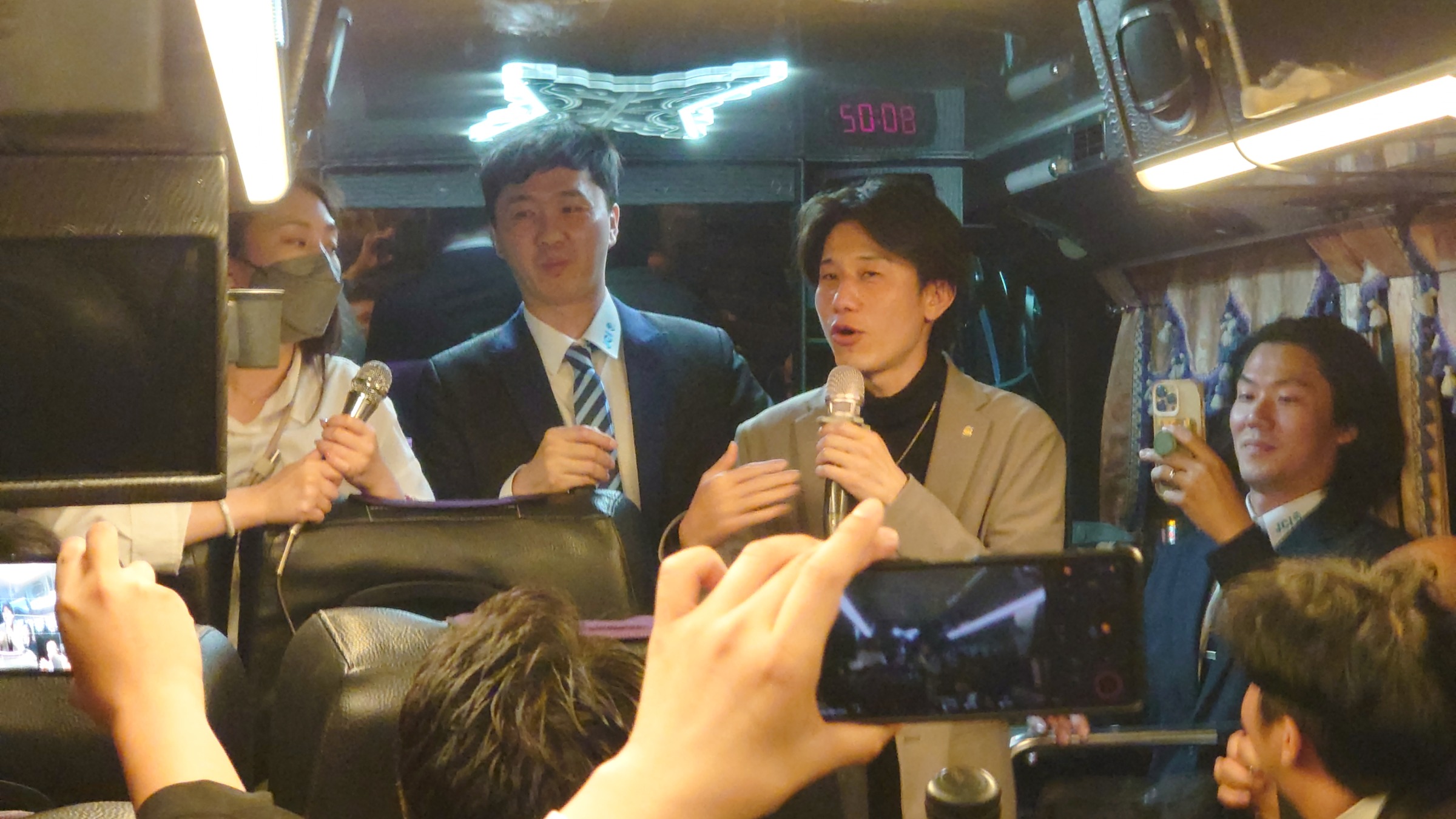 バスの道中も理事長挨拶など青年会議所同士の紹介をしてました。