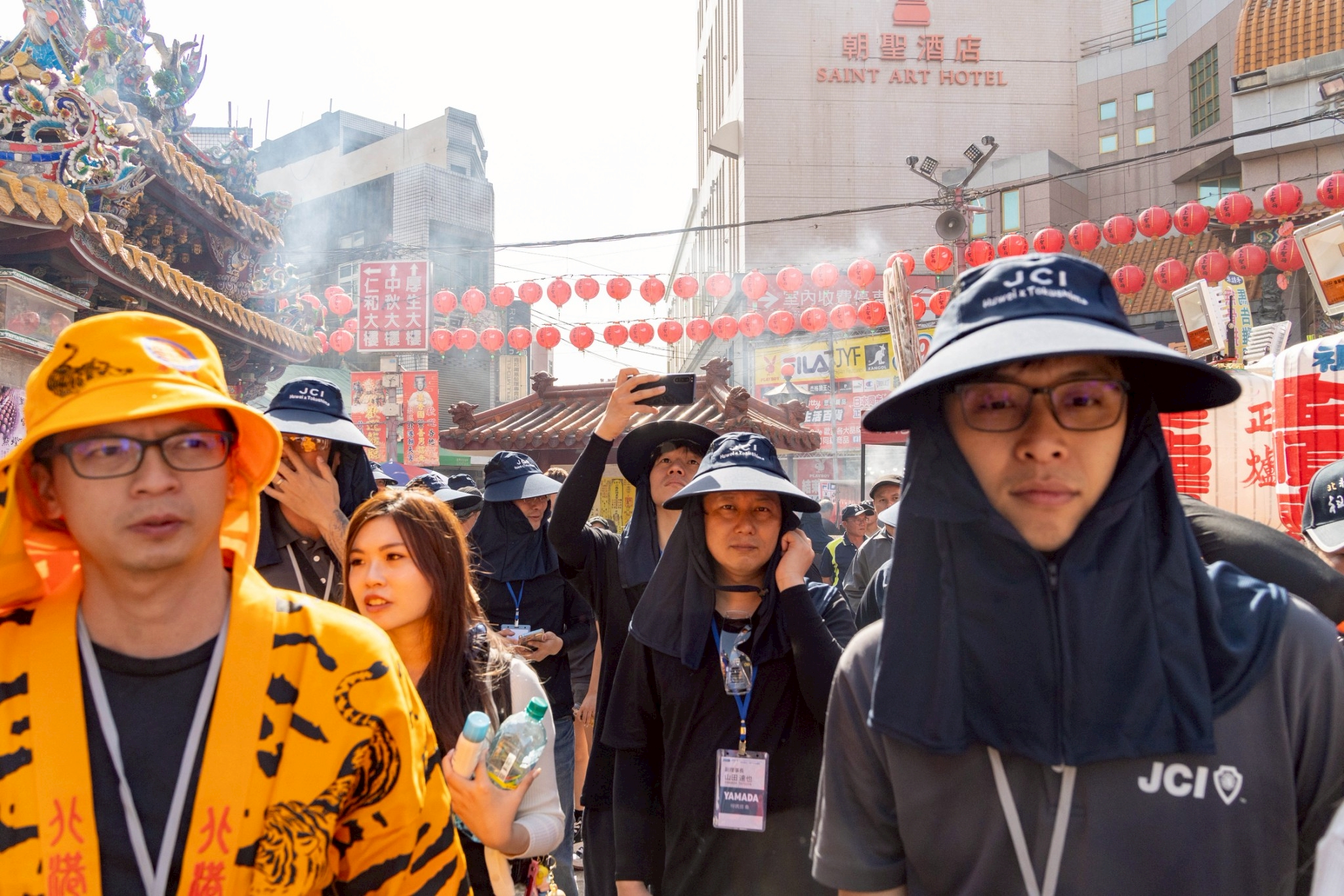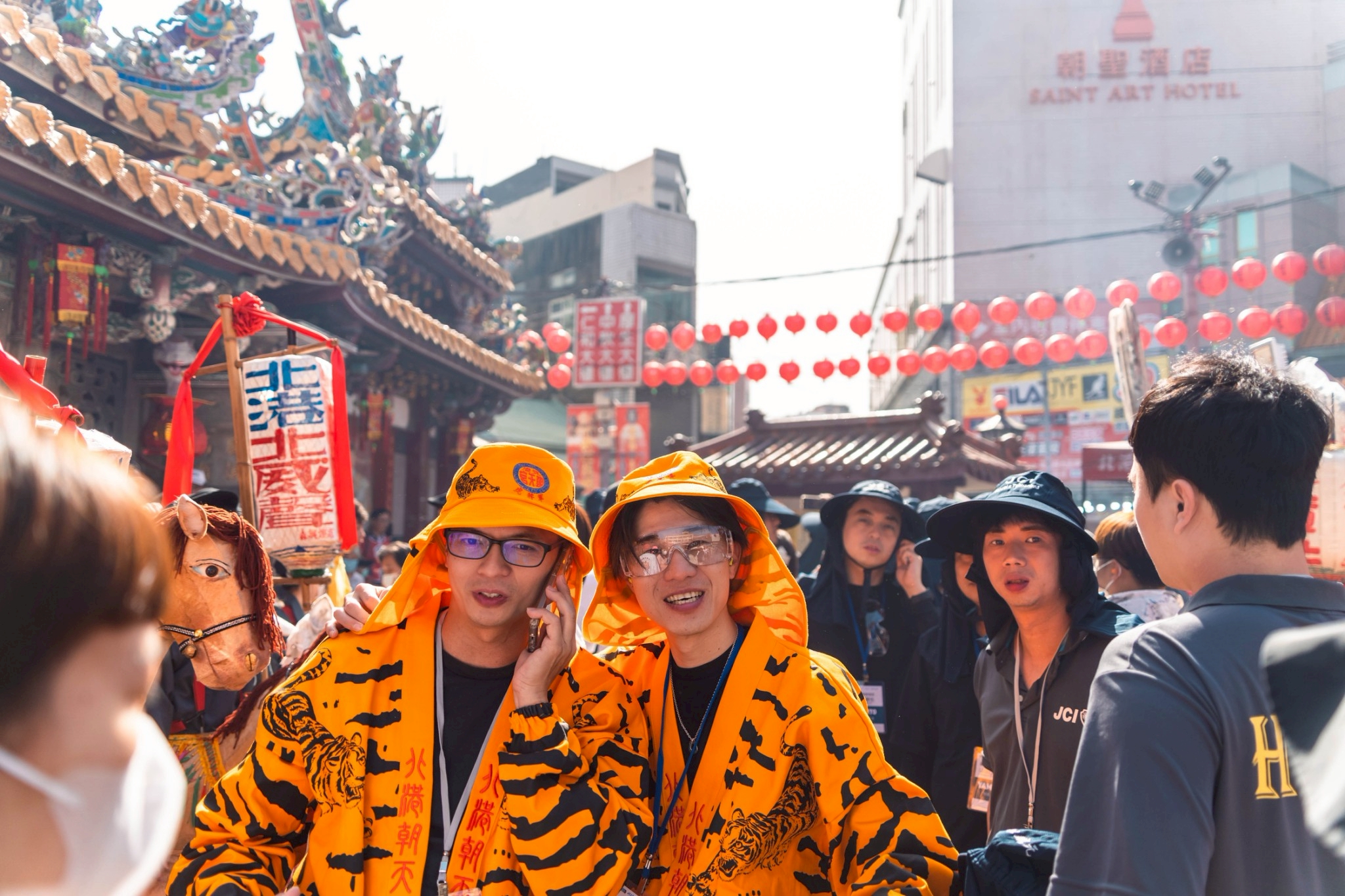 お祭り参加前は見るだけかと思いましたが、虎尾國際青年商會様のおもてなしで、お祭り自体に参加し、至近距離で爆竹の灰を浴びることができました。