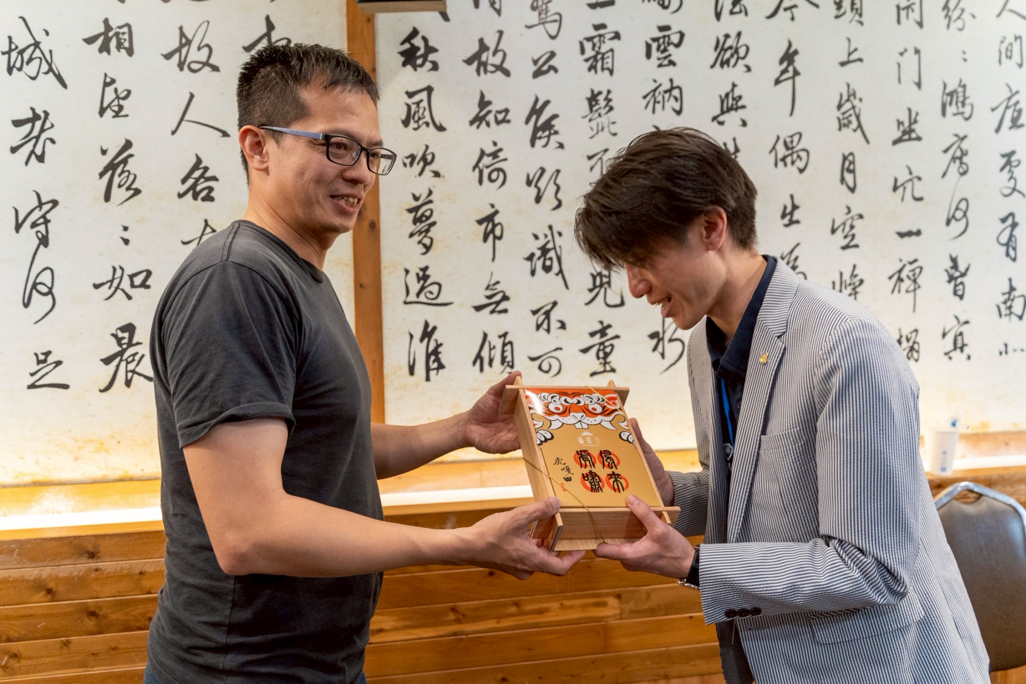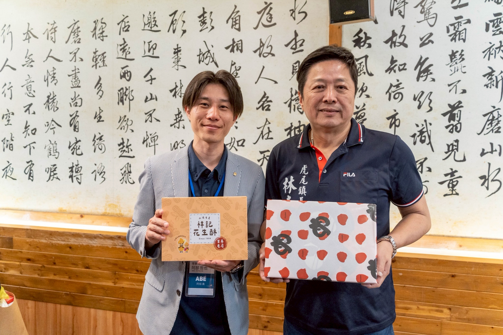 徳島青年会議所と虎尾國際青年商會様の理事長と虎尾國際青年商會の交流担当の委員長との写真