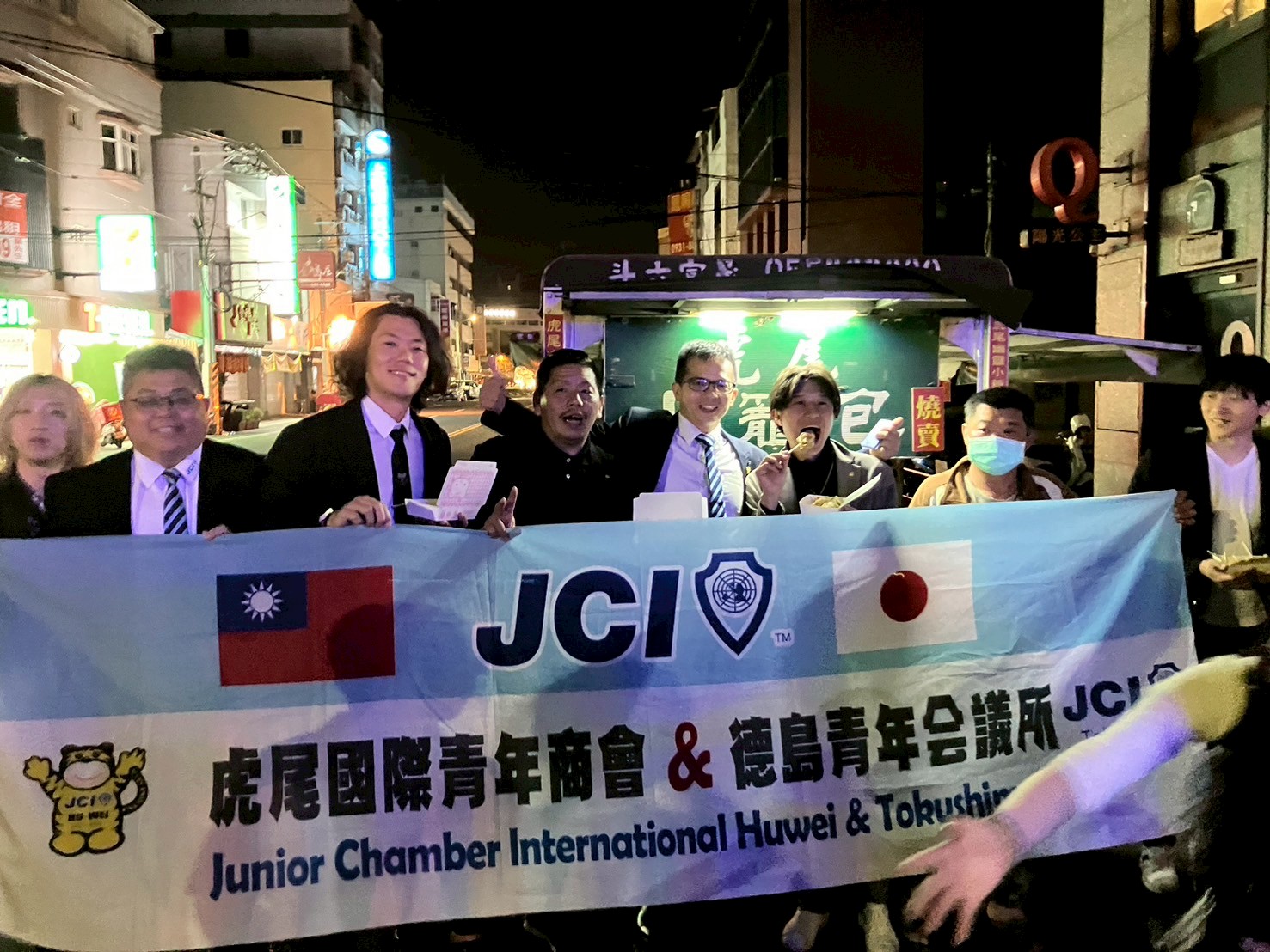 2023年より台湾の虎尾國際青年商會(フーウェイJC)との交流により、国際の機会を提供する幅が広がりました。これまでの活動として虎尾JCのメンバーには徳島の誇る伝統的祭りである阿波踊りに参加していただき、また徳島のメンバーは世界三大宗教祭典とも称される媽祖誕辰(海の女神の生誕祭)にご招待いただき、良い関係値を築いて参りました。そしてついに2024年11月1日、世界会議の台湾の地にて姉妹締結を行ったことにより、これまでの活動が継続的なものになることが互いに約束され、より強固な関係構築のためにこれからの活動について話し合いが進められているところであります。(引用元:徳島青年会議所理事長メッセージより:https://archives.tokushima-jc.or.jp/2025/about/message)