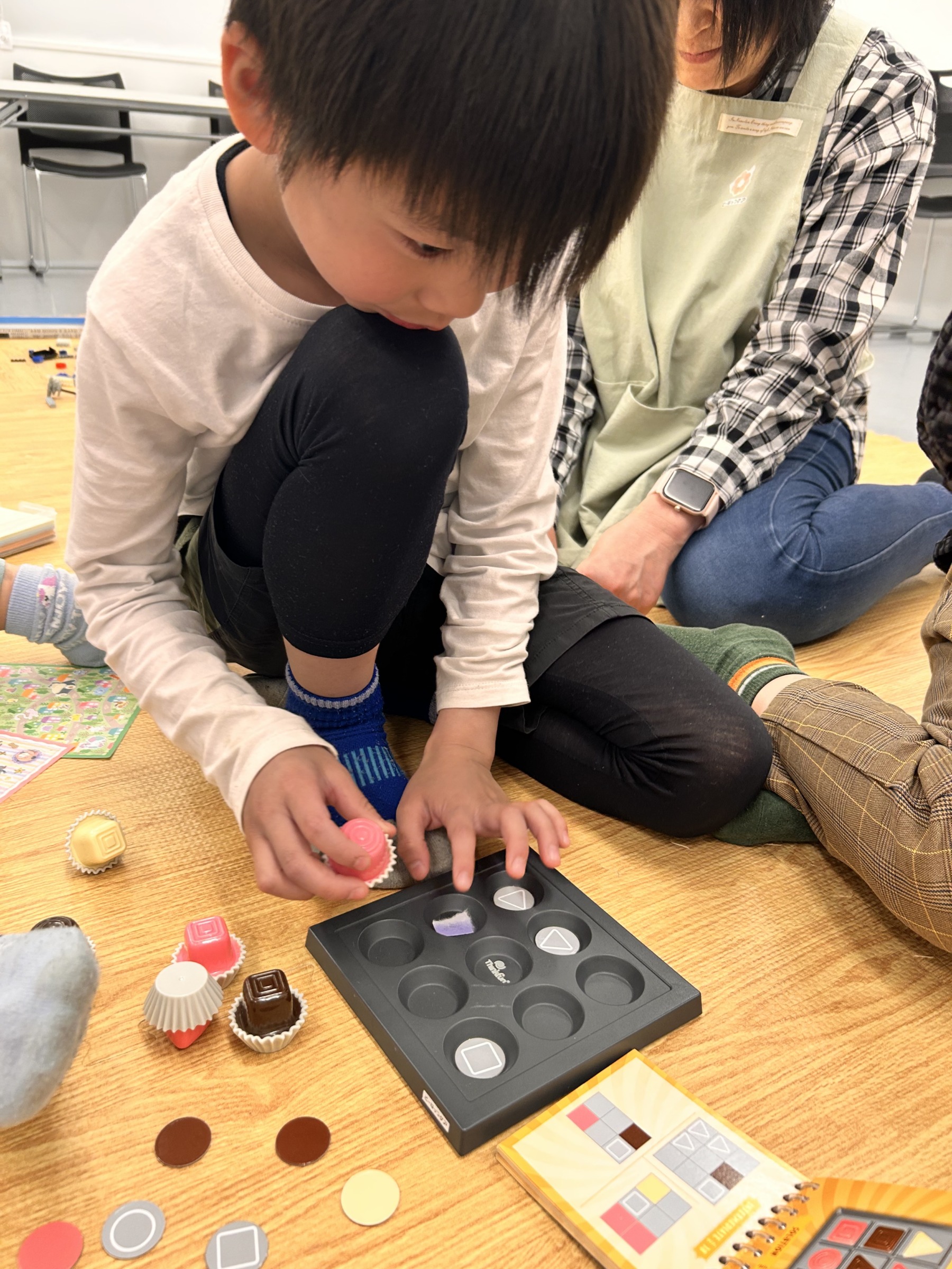 見たことのないボードゲーム?に熱中していました!チョコレートの推理ゲームだそうです。