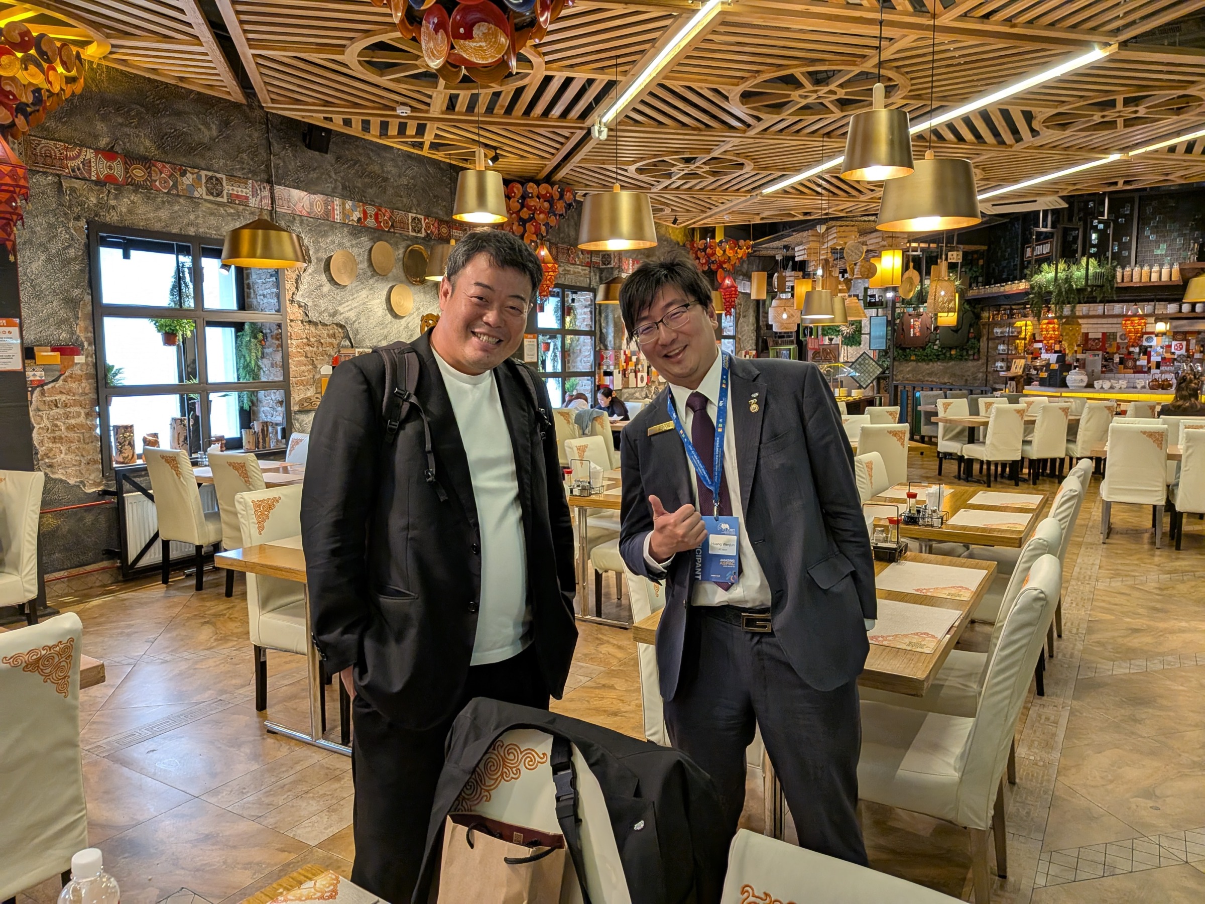 ASPACで忙しい中、徳島青年会議所メンバーの黄さんが駆けつけてくれました。(右の方です!)翻訳として会話を補助していただき、ありがとうございました!(写真は監事とのツーショット!)
