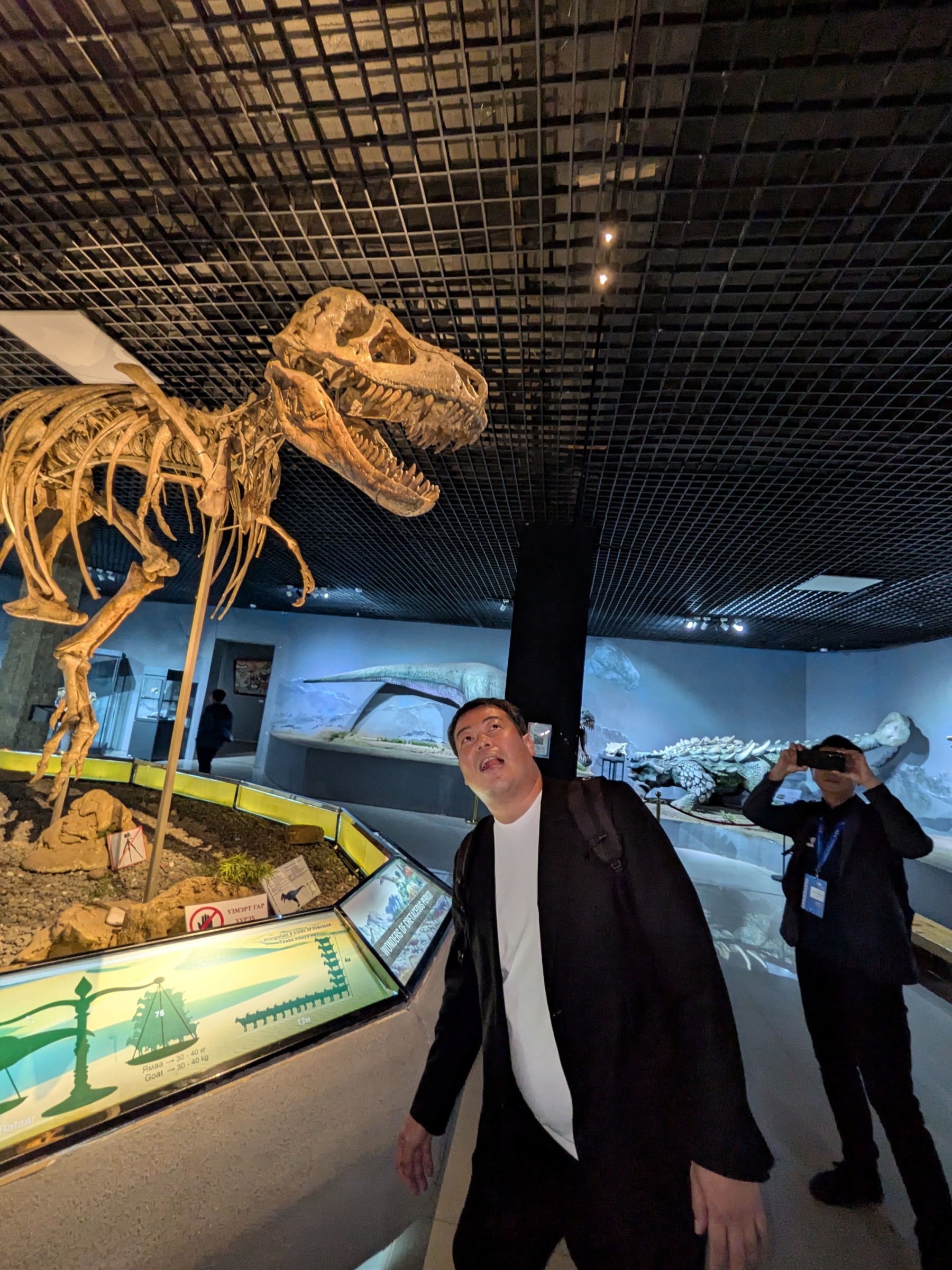 化石と一緒に写真を撮ったり、実際に動物の骨を触ってみたり(※触ってよい展示品です。)モンゴルが恐竜大国であったことを感じることができました。