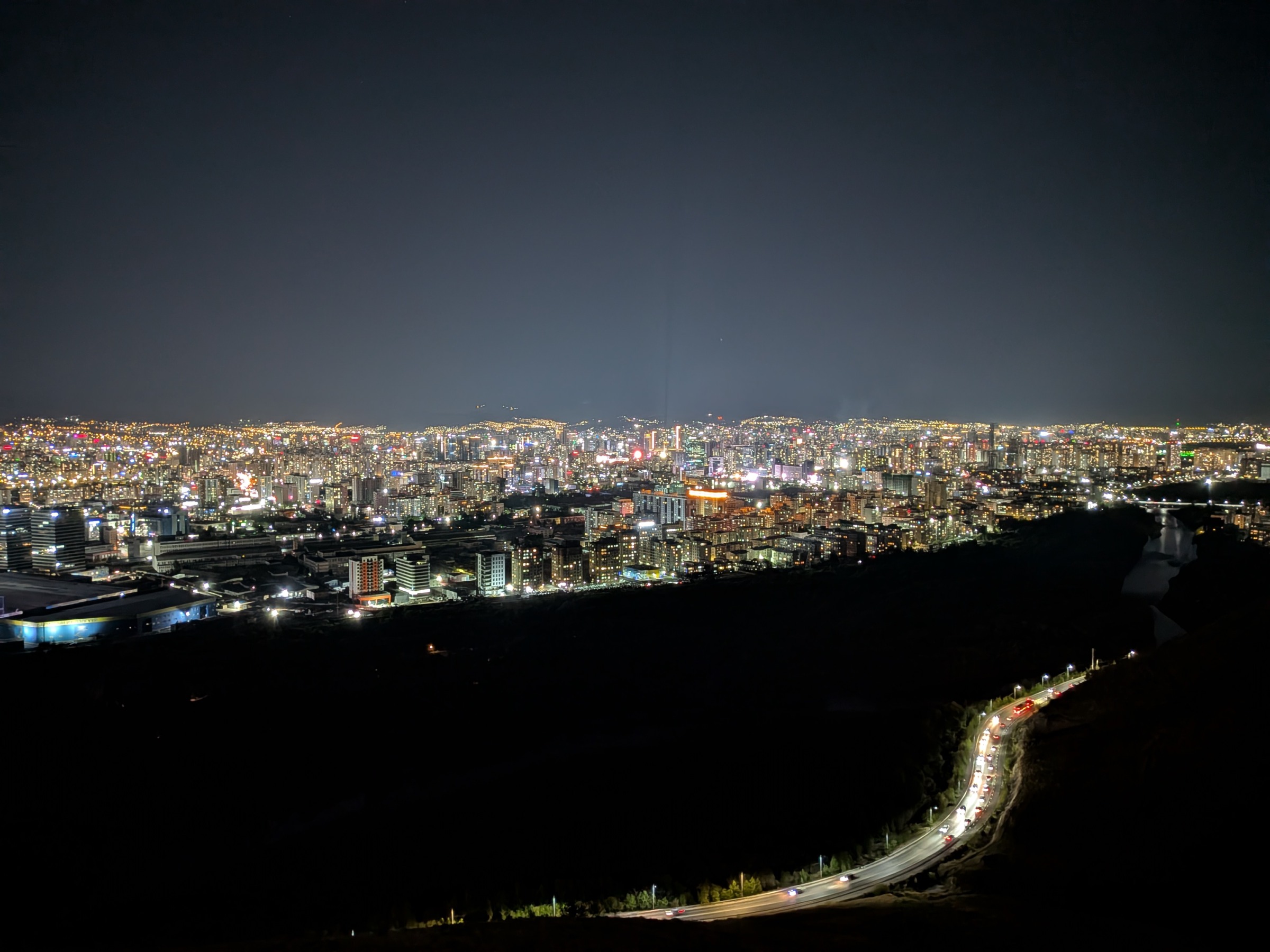 ウランバートルの大きさがわかる素晴らしい夜景を見ることができました。